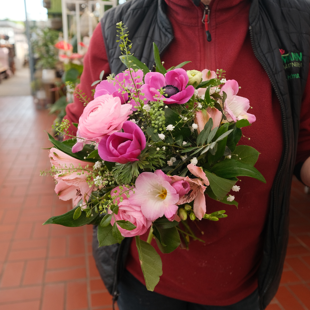 Bei uns finden Sie eine große Auswahl an frischen Blumen, robusten Pflanzen für Haus und Garten sowie saisonale Eigenproduktionen direkt aus unseren Gewächshäusern. Zudem gestalten wir individuelle Sträuße, liebevolle Hochzeits- und Anlassfloristik sowie handgefertigte Richtkronen – alles mit Herz und regionaler Verbundenheit. Ob für Ihr Zuhause, als Geschenk oder mit persönlicher Beratung: In unserer barrierefreien Gärtnerei sind Sie immer herzlich willkommen.
